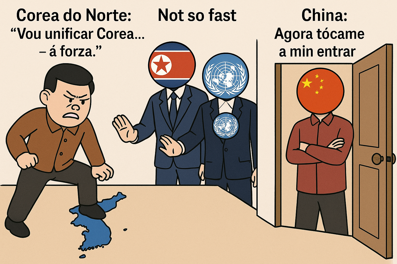 A Guerra de Corea comezou cando Corea do Norte, comunista, invadiu Corea do Sur.