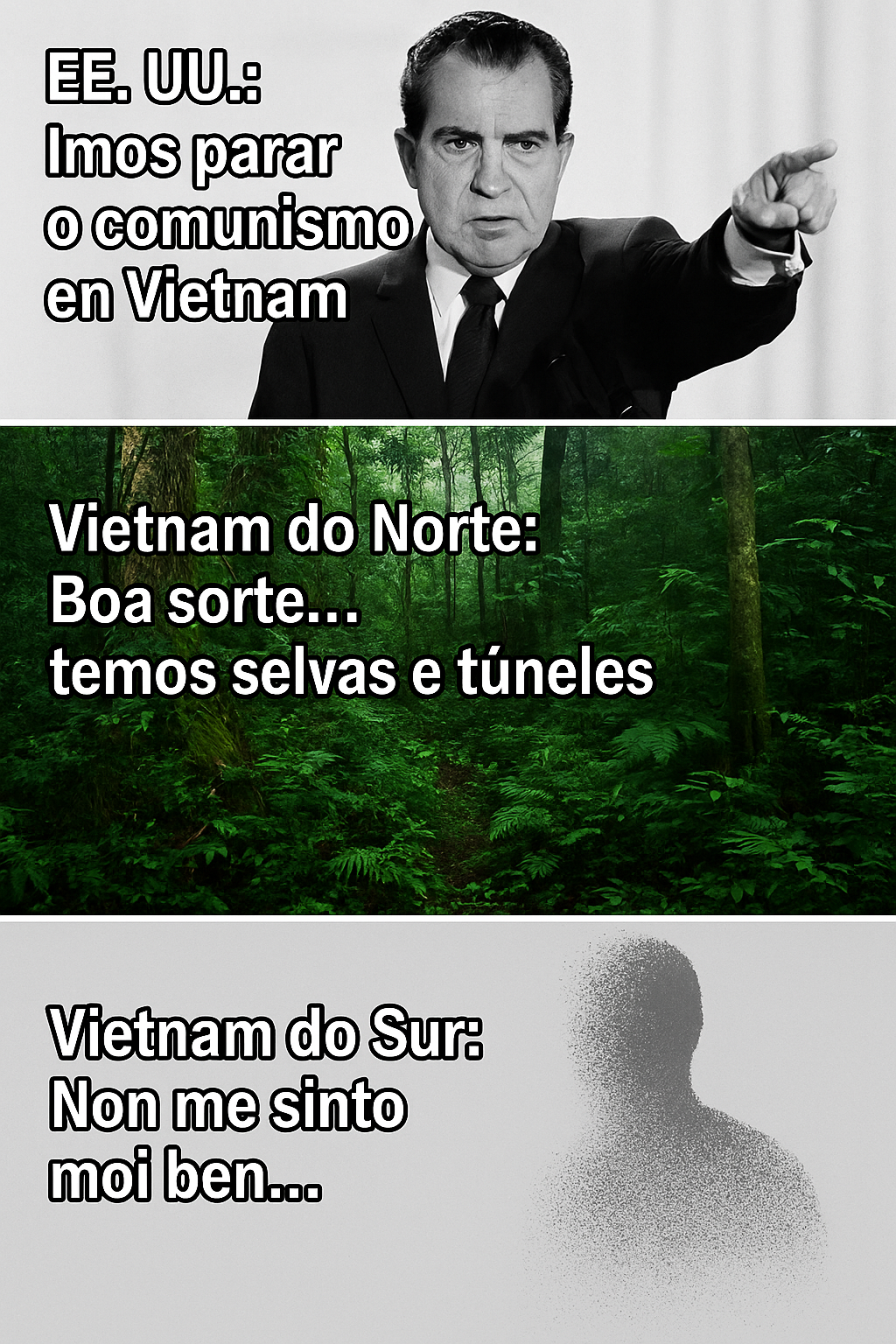 Vietnam do Norte (comunista) combateu contra Vietnam do Sur, apoiado por EE. UU.