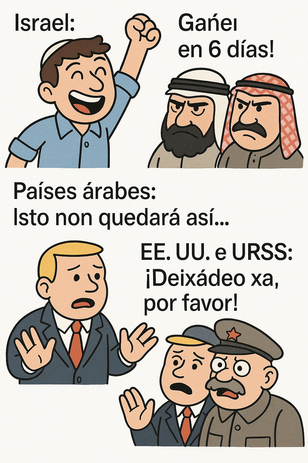 A URSS apoiaba aos árabes e EE.UU. a Israel, aumentando a tensión global. O conflicto tivo un importante impacto na enerxía e política mundial.